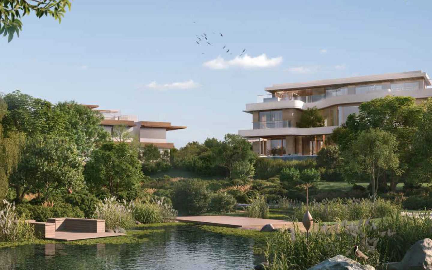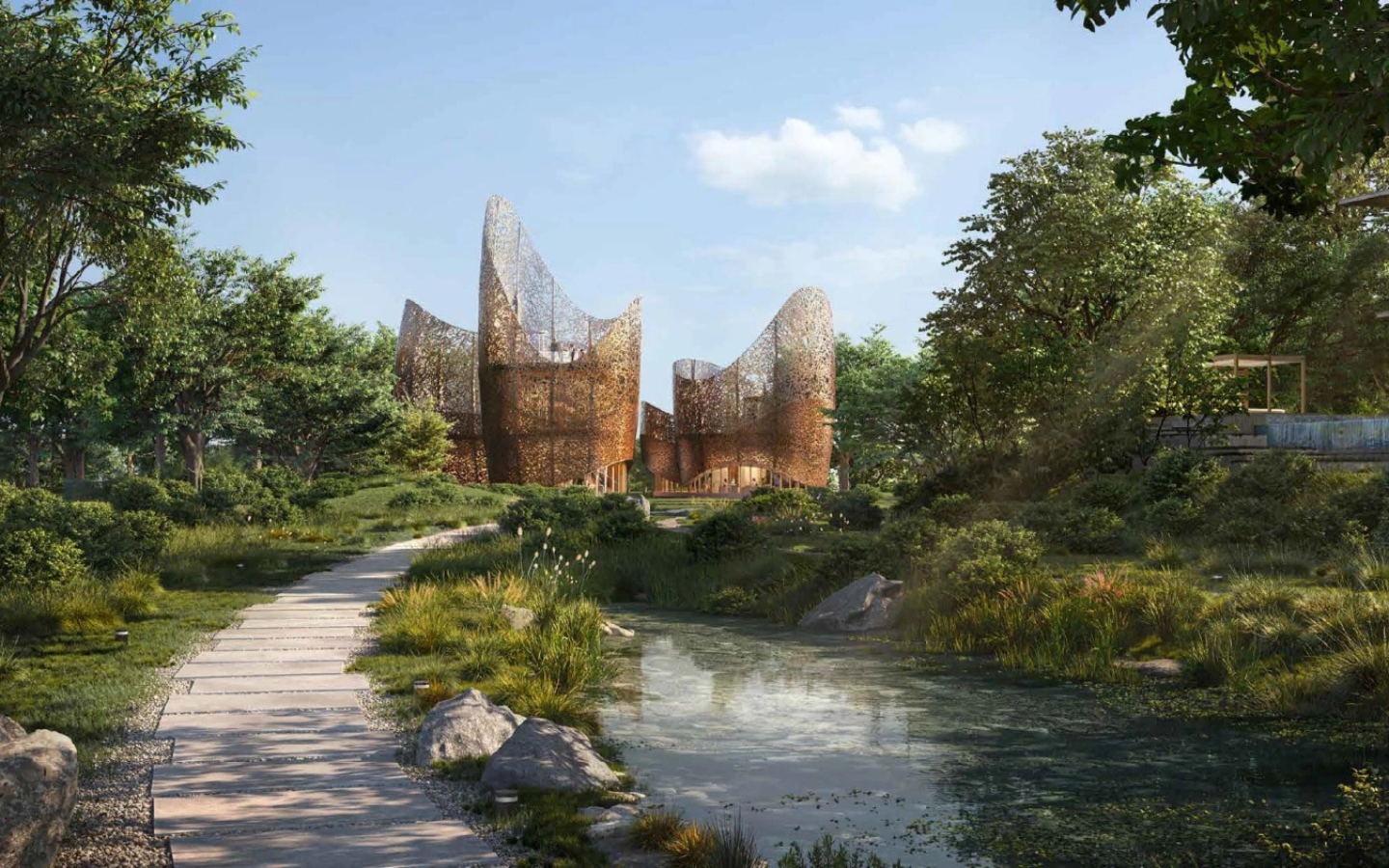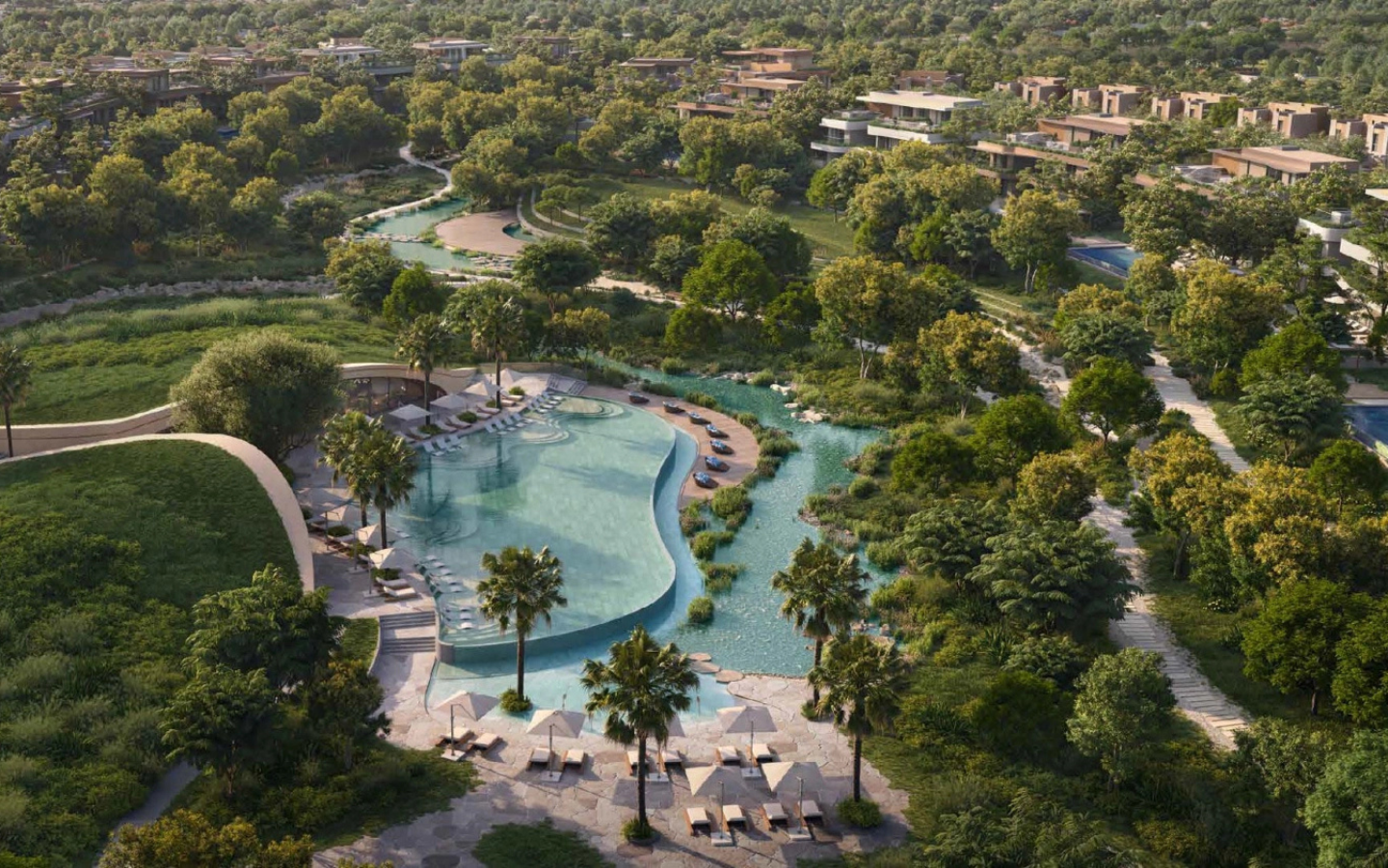 Nature-led and wellness-focused architecture inspired by biophilic design and LEED Platinum environmental standards.