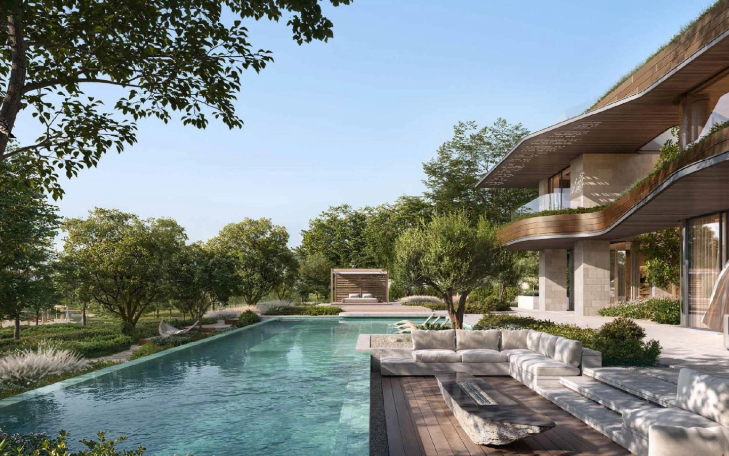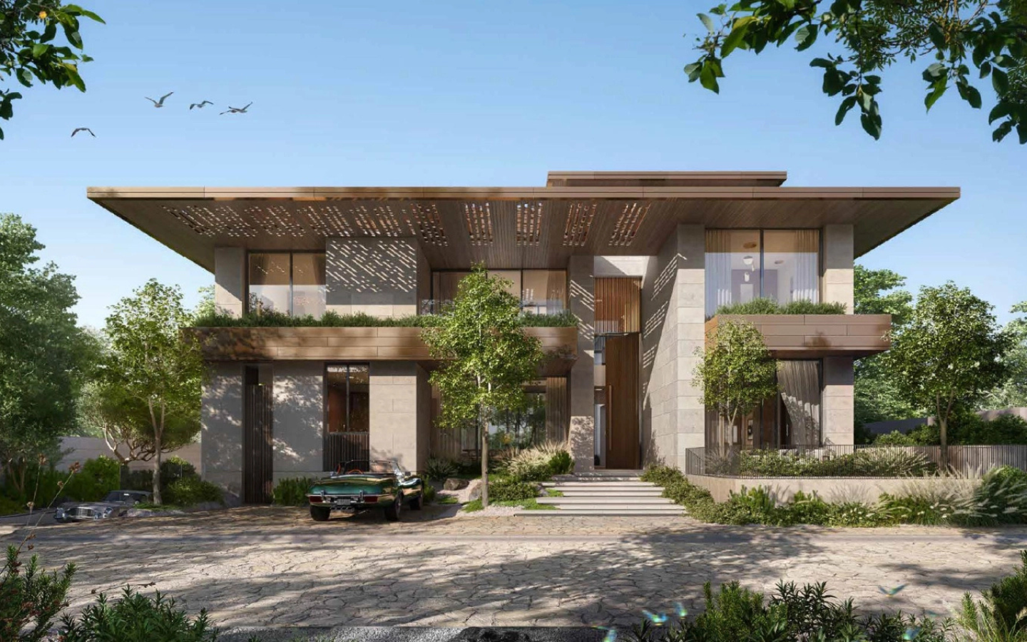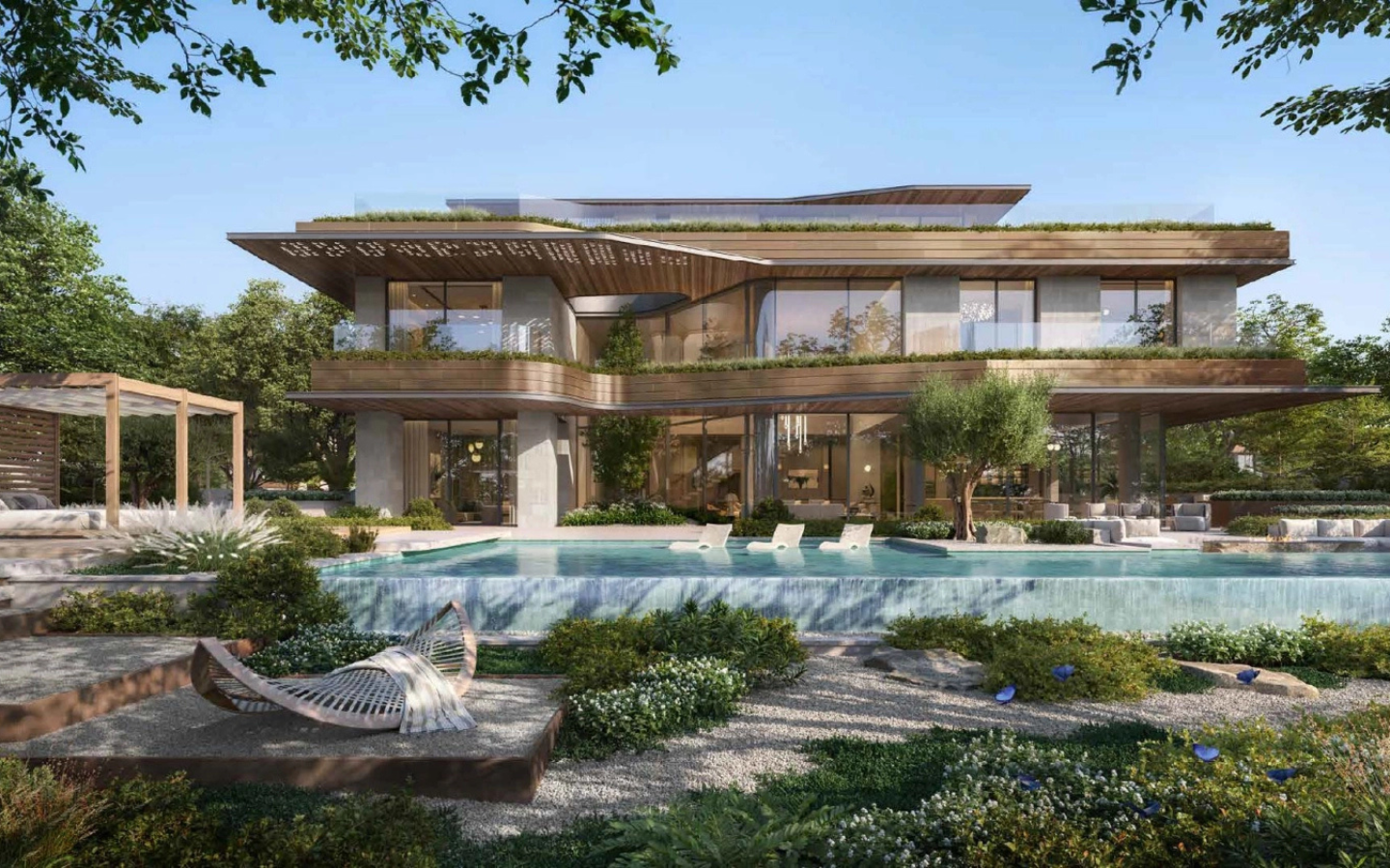 Nature-led and wellness-focused architecture inspired by biophilic design and LEED Platinum environmental standards.